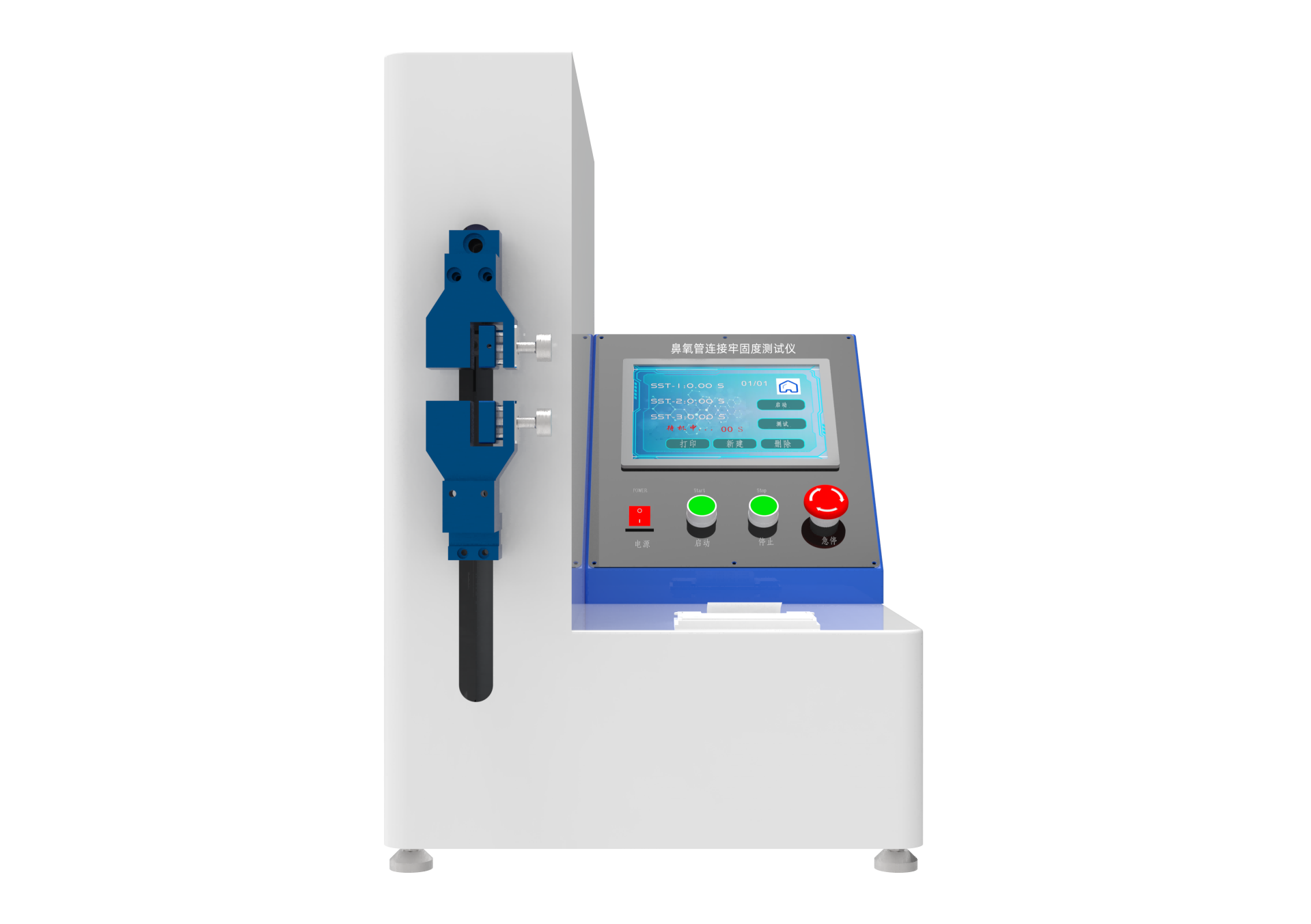 通过夹持装置固定鼻氧管组件,负载传感器施加轴向静拉力(粘接处30N、连接处15N),持续15秒检测是否破裂或脱落。
