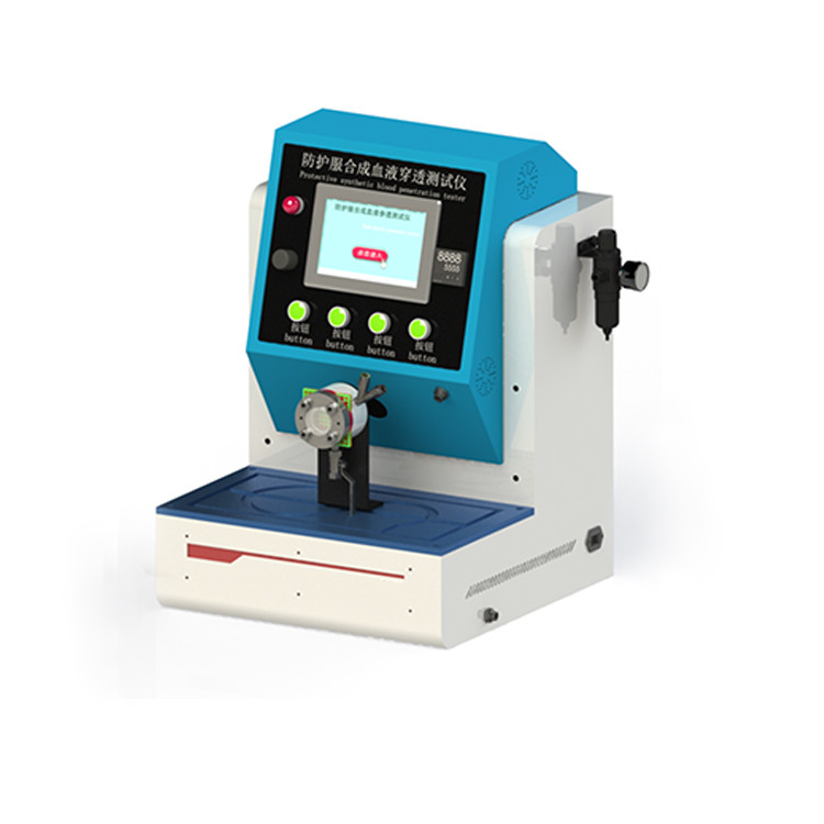防护服合成血液穿透测试仪用于合成血液等液源性液体喷射穿透性能的测定,以评估其安全防护性能。主要用于测试防护服对血液、体液、血液病原体(用Phi-X 174抗菌素测试)、合成血等液体的抗渗透性。适用手套、防护装、外罩、连体工作服、靴子等防护装备的抗液体渗透性能。